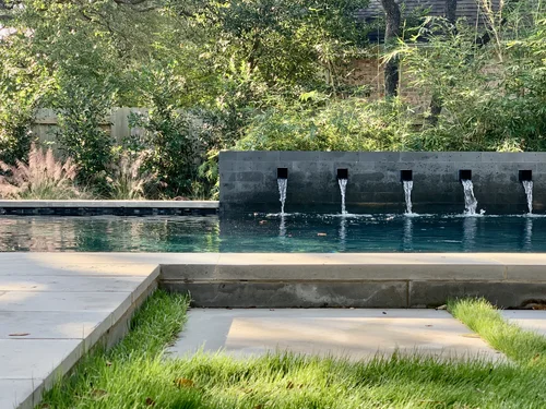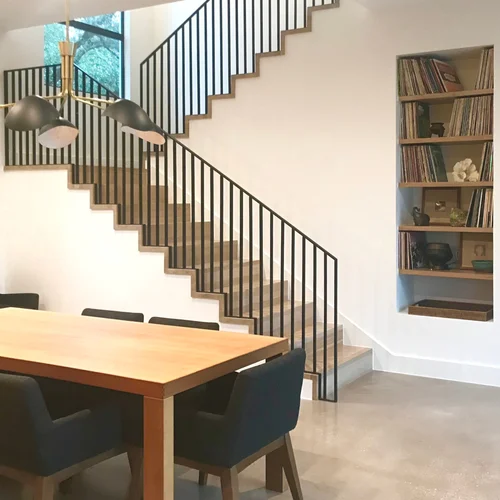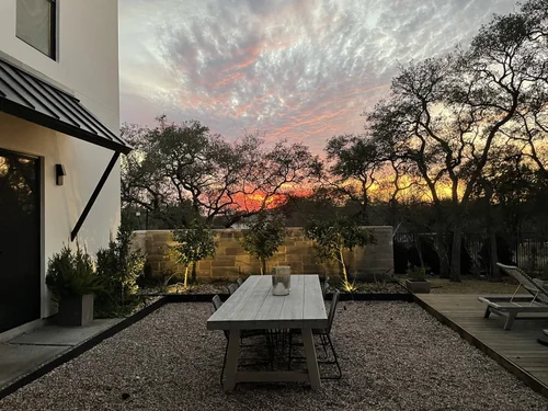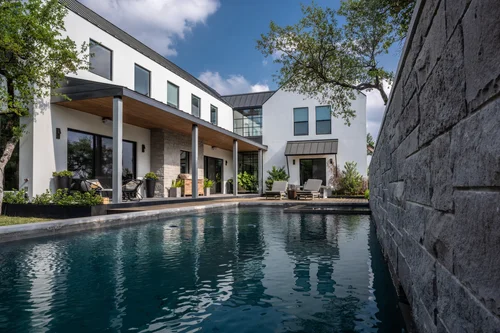 AS FEATURED IN EAST AUSTIN MAGAZINE AND AN AWARD WINNING DESIGN IN AUSTIN HOME MAGAZINE, THIS TIGHT URBAN SITE AND ITS LARGE PECAN CREATED AN OPPORTUNITY FOR A COURTYARD GATHERING SPACE WITH SURROUNDING LIVING AREAS. RAW NATURAL MATERIALS CARRY FROM THE OUTSIDE IN, FURTHER CONNECTING THE HOUSE TO THE GARDEN. LIGHTER GLASS AND REFINED CABINETRY COMPLEMENT THE RAW STEEL AND LIMESTONE SURFACES.